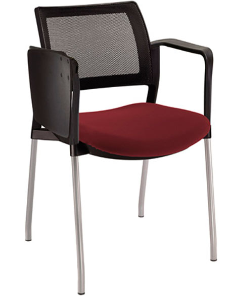 Kyos MallaEstructura: de acero tubular de 7/8″ de diámetro, calibre 14; con acabado en pintura epóxica (electrostática) color negro mate o gris, con descansabrazos de polipropileno en color negro y con paleta lateral abatible en color negro fijada al brazo mediante un dispositivo.