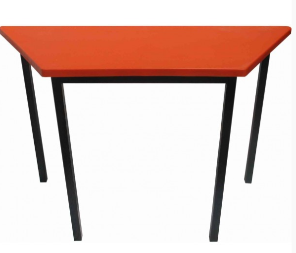 Mesa Trapezoidal InfantilPintada, cubierta trapezoidal de polipropileno. Medidas: 120 x 60 x 50cm.