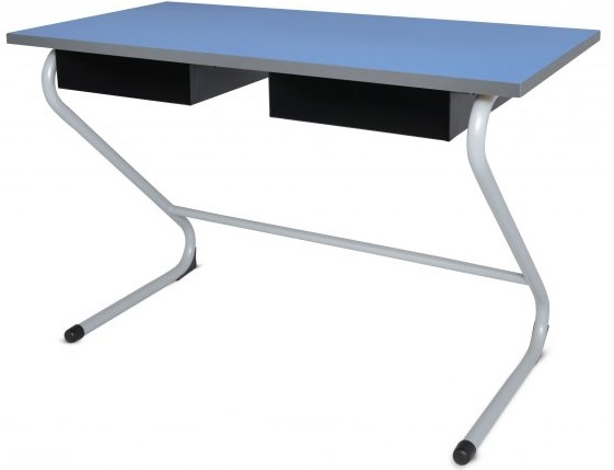 Mesa Z Binaria PintadaPatas fabricadas en perfil de acero tubular redondo de 1 1/4" cal. 16 Acabado en pintura horneada micropulverizada en color gris aluminio, con cubierta MDF de 25mm con laminado plastico con cantos termofusionados en PVC de 2mm en color gris. Con una portapaleta de lamina calibre 22 pintada en color negro. Medidas:120 x 60 x 75 .
